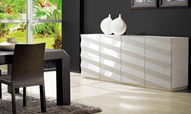 The ZigZag line produces a dynamic play of light and shade, emphasized by the faceted wood surfaces and by the moving reflexes on the high-gloss lacquered front panels. Despite its apparent formal complexity, the line is built using modules - aimed at optimizing production -which act as a game of composition where the various pieces form a puzzle of easy production and assembly.